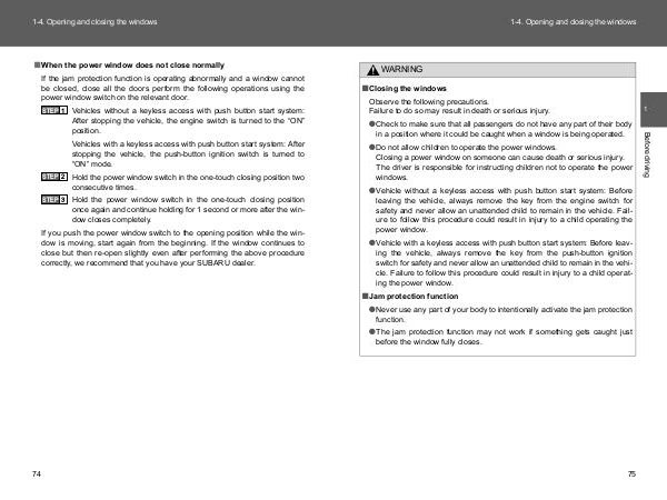 If you push the power window switch to the opening position while the window is moving, start again from the beginning. If the window continues to
