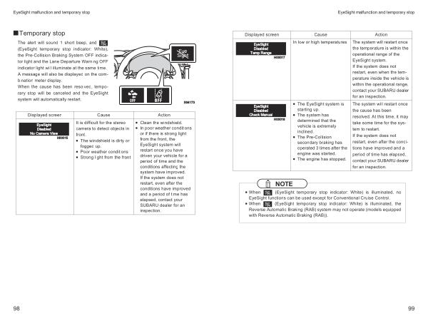 EyeSight Disabled Temp Range