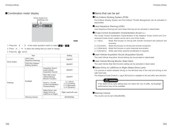 If the Select Drive Lane setting does not match the flow of traffic , full EyeSight performance may not be available .