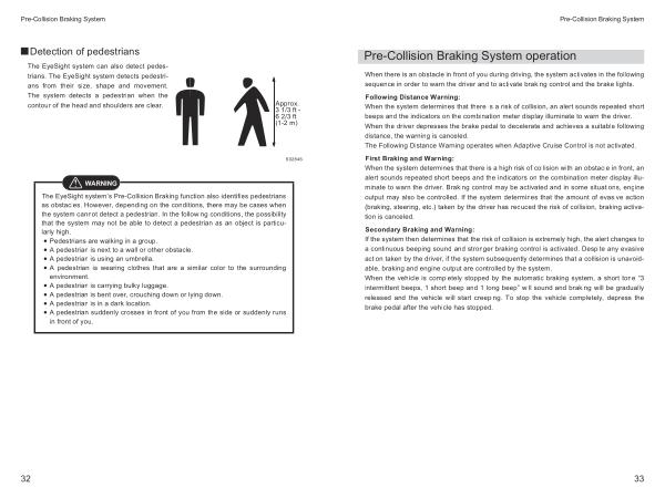 Pre-Collision Braking System operation