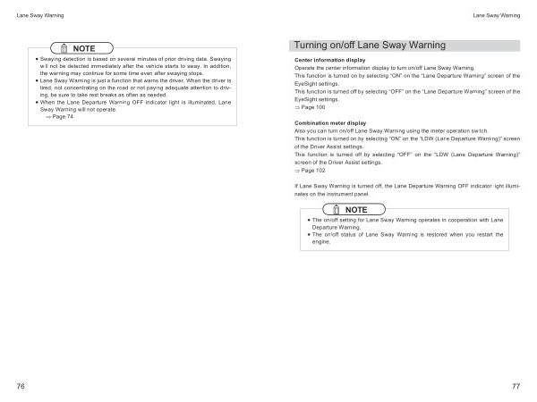 • When the Lane Departure Warning OFF indicator light is illuminated , Lane Sway Warning will not operate .