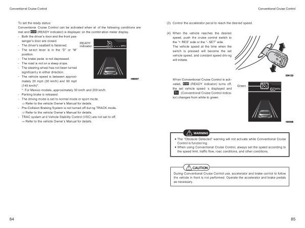• The “ Obstacle Detected ” warning will not activate while Conventional Cruise Control is functioning .