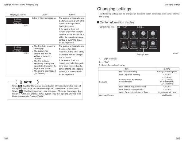 The system will restart once the temperature is within the operational range of the EyeSight system . If the system does not restart , even when the temperature inside the vehicle is within the operational range , contact a SUBARU dealer for an inspection . The system will restart once the cause has been resolved . At this time , it may take some time for the system to restart . If the system does not restart , even after the conditions have improved and a period of time has elapsed , contact a SUBARU dealer for an inspection .