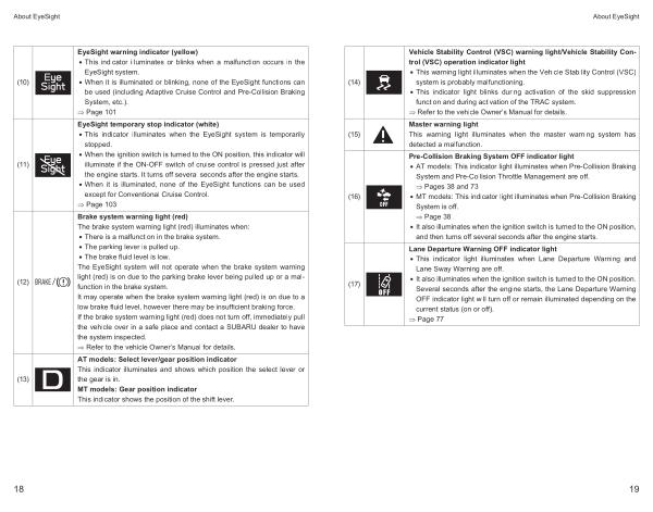 • This indicator illuminates when the EyeSight system is temporarily stopped .