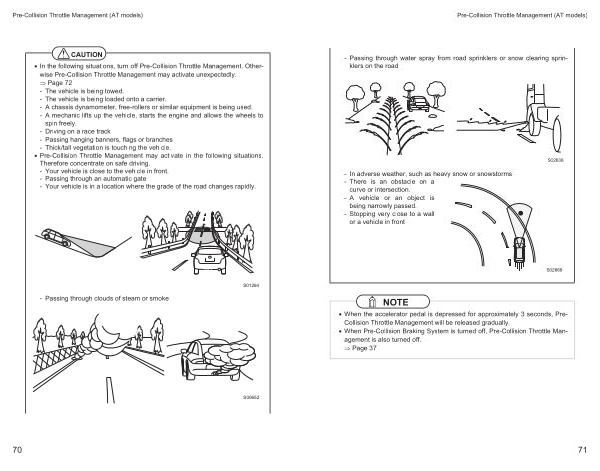 • Pre-Collision Throttle Management may activate in the following situations . Therefore concentrate on safe driving . - Your vehicle is close to the vehicle in front . - Passing through an automatic gate - Your vehicle is in a location where the grade of the road changes rapidly .