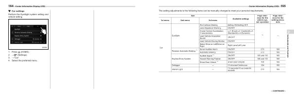 1 . Press ( HOME ). 2 . → ( Settings ) 3 . → “ Car ” 4 . Select the preferred menu .