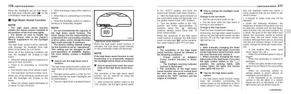 � Do not overestimate the capacity of the high beam assist function . The driver always has the responsibility to understand the surrounding situation , to drive safely , and to change the headlight mode manually if necessary . � The factory setting ( default setting ) for this function is set as “ operational ”. This setting can be changed to OFF ( non-operation ) at SUBARU dealers . For more details , contact a SUBARU dealer .