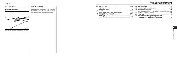 6-1 . Interior Light ........................................................ 210 Map Lights ..................................................................... 210 OFF Delay Timer ........................................................... 210