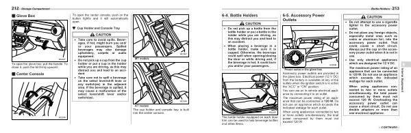 ▼ Cup Holder and Console Tray To open the glove box , pull the handle . To close it , push the lid firmly upward .