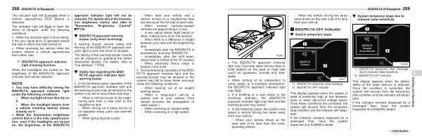 � You may have difficulty seeing the BSD / RCTA approach indicator light under the following conditions . - When sunlight shines directly on it - When the headlight beams from a vehicle traveling behind shines directly on it � While the illumination brightness control dial is in the fully upward position , even if the headlights are turned on , the brightness of the BSD / RCTA