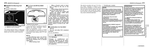 To turn the BSD / RCTA system on and off , operate the center information display . Refer to " Car settings " �P164 .