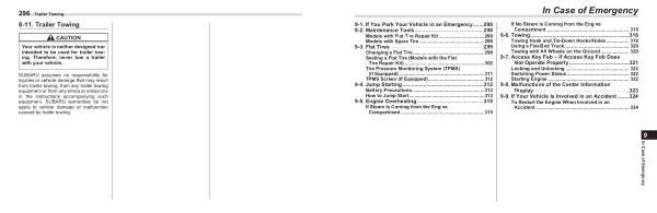 9-2 . Maintenance Tools .............................................. 298 Models with Flat Tire Repair Kit .................................. 299 Models with Spare Tire ................................................ 299