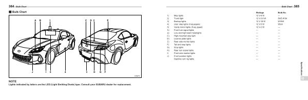 Lights indicated by letters are the LED ( Light Emitting Diode ) type . Consult your SUB
