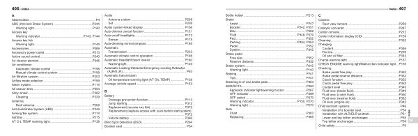 Tips ................................................................................. P241 Breaking-in of new brake pads ............................................ P353 BSD / RCTA .......................................................................... P263 Approach indicator light / warning buzzer ......................... P267 OFF indicator .................................................................. P269 OFF switch ...................................................................... P270 Warning indicator .................................................. P150 , P270 Warning light ................................................................... P270