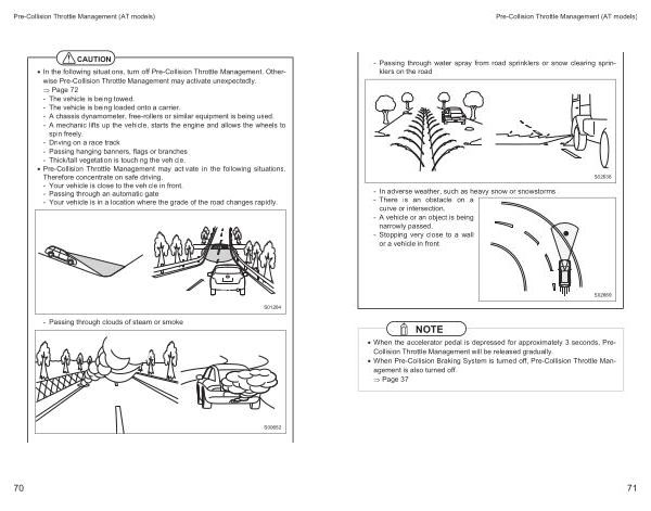 • Pre-Collision Throttle Management may activate in the following situations . Therefore concentrate on safe driving . - Your vehicle is close to the vehicle in front . - Passing through an automatic gate - Your vehicle is in a location where the grade of the road changes rapidly .