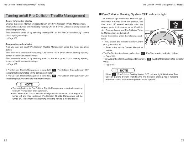 Pre-Collision Throttle Management ( AT models )