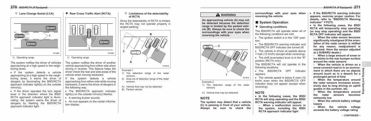 The BSD / RCTA will operate when all of the following conditions are met.