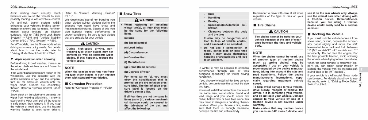 Remember to drive with care at all times regardless of the type of tires on your vehicle. ■ Tire Chains CAUTION
