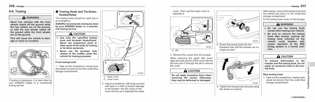 SUBARU recommends towing be done by your SUBARU dealer or a commercial towing service. CAUTION