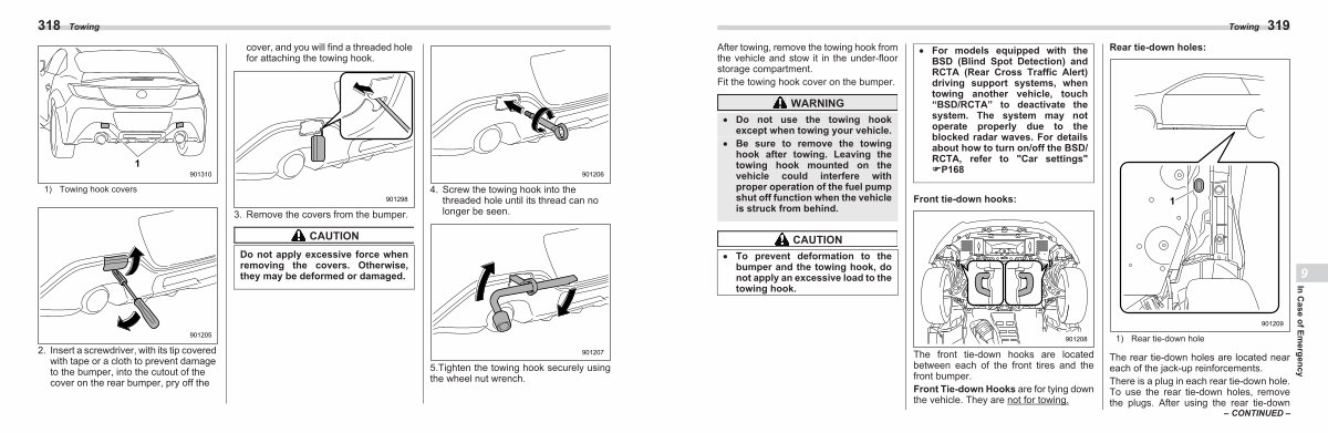 Towing cover, and you will find a threaded hole for attaching the towing hook. 1) Towing hook covers