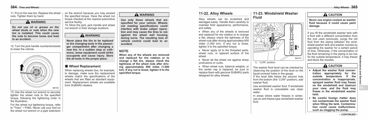 11-22. Alloy Wheels Alloy wheels can be scratched and damaged easily. Handle them carefully to maintain their appearance, performance, and safety.