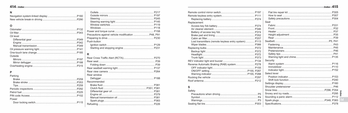 Index N Navigation system-linked display......................................... P160 New vehicle break-in driving................................................ P290