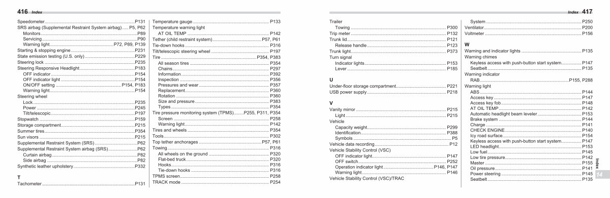 Towing............................................................................ P300 Trip meter............................................................................ P132 Trunk lid............................................................................... P121