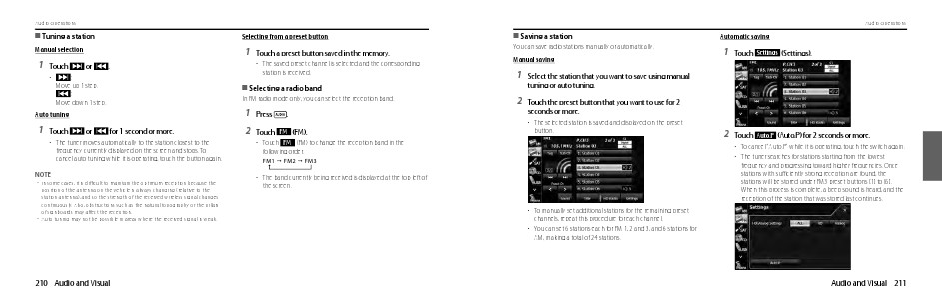 • You can set 6 stations each for FM 1, 2 and 3, and 6 stations for