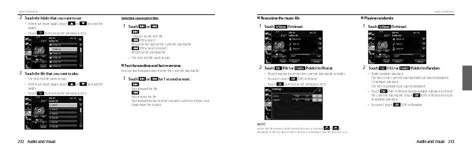 • Touch File (File) in Repeat during random playback to repeat