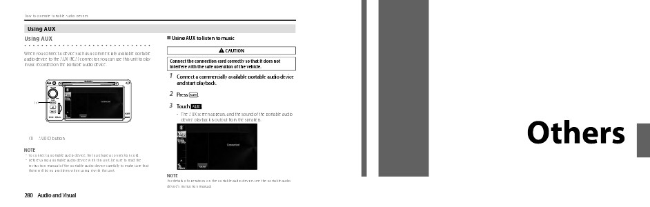 audio device to the AUX (RCA) connector, you can use this unit to play
