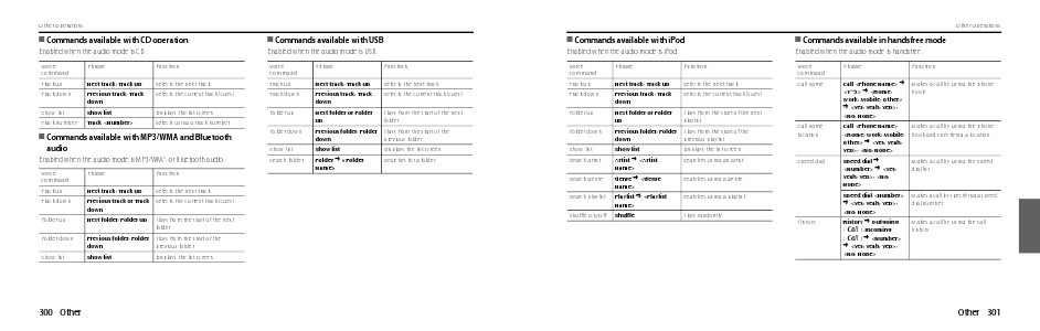 I Commands available in handsfree mode