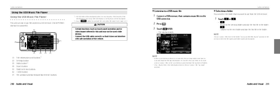 only MP3/WMA files in the USB memory and minimize the number of folders.