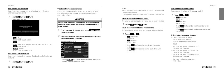 Message Readout Volume setting