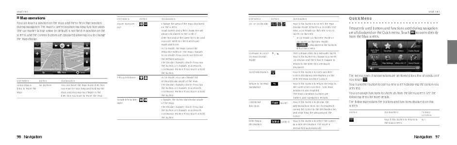 Frequently used buttons and functions used during navigation