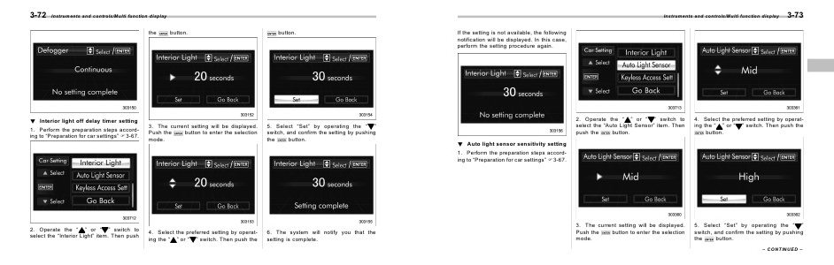 1. Perform the preparation steps according to “Preparation for car settings” F3-67.
