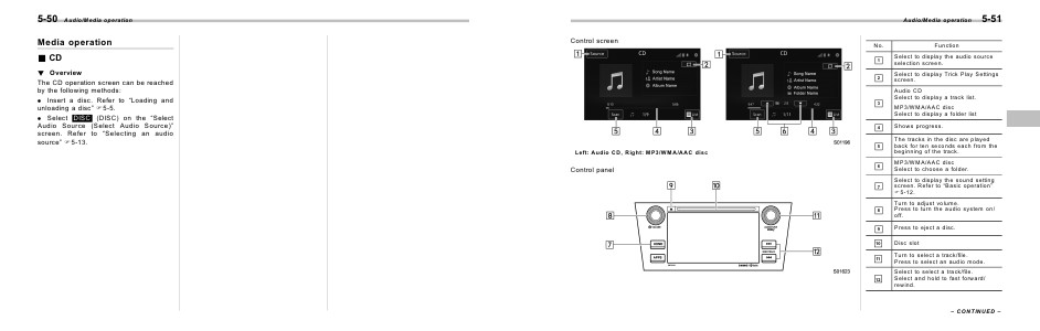 Left: Audio CD, Right: MP3/WMA/AAC disc