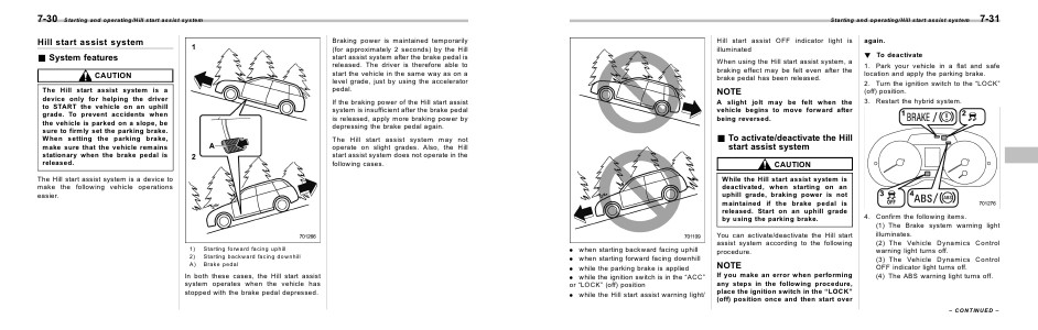 while the Hill start assist warning light/