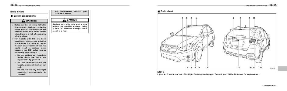 Specifications/Bulb chart