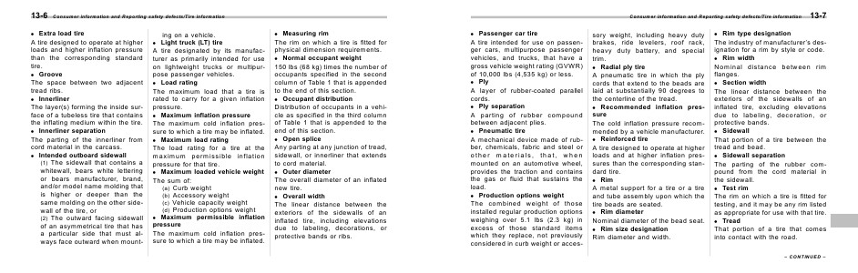 Consumer information and Reporting safety defects/Tire information
