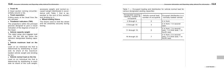 Table 1 — Occupant loading and distribution for vehicle normal load for