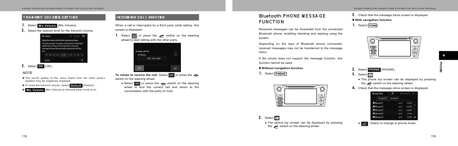 PHONE OPERATION (HANDS-FREE SYSTEM FOR CELLULAR PHONES)