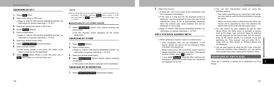 Refer to “HINTS FOR QUICK ADDRESS ENTRY” for