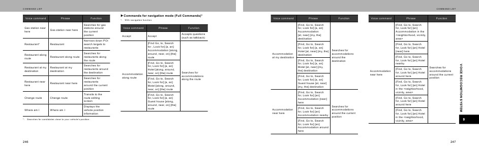 Commands for navigation mode (Full Commands)*