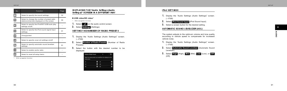 Display the “Audio Settings (Audio Settings)” screen.