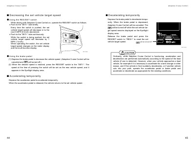 (1) Depress the brake pedal to decrease the vehicle speed. (Adaptive Cruise Control will be