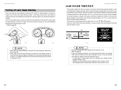 longer to turn off the Lane Sway Warning. When 1 short beep sound emits, this function is