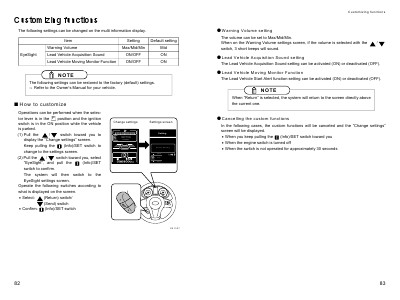The following settings can be changed on the multi information display.