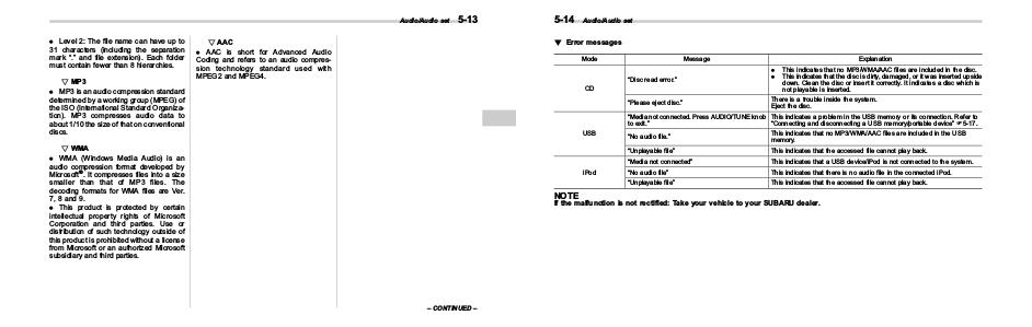 “Media not connected. Press AUDIO/TUNE knob This indicates a problem in the USB memory or its connection. Refer to