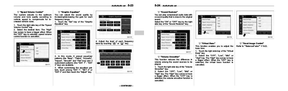 3. When customizing the equalizer pattern, touch among “SET 1”, “SET 2” or