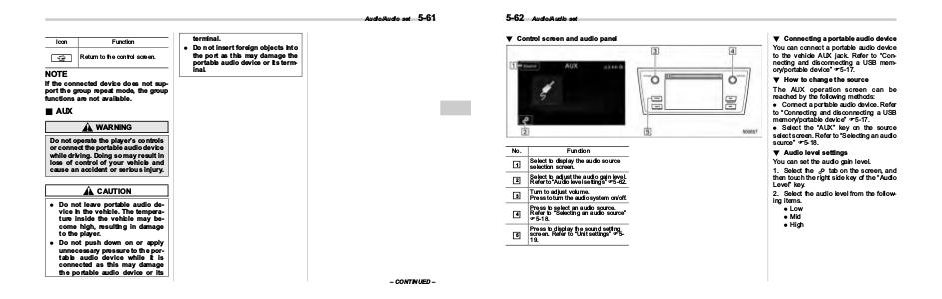 . Do not leave portable audio device in the vehicle. The temperature inside the vehicle may become high, resulting in damage